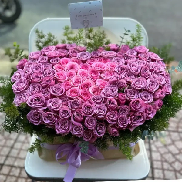 A breathtaking heart-shaped arrangement of 100 fresh pink roses, gracefully designed to express pure love and deep devotion.